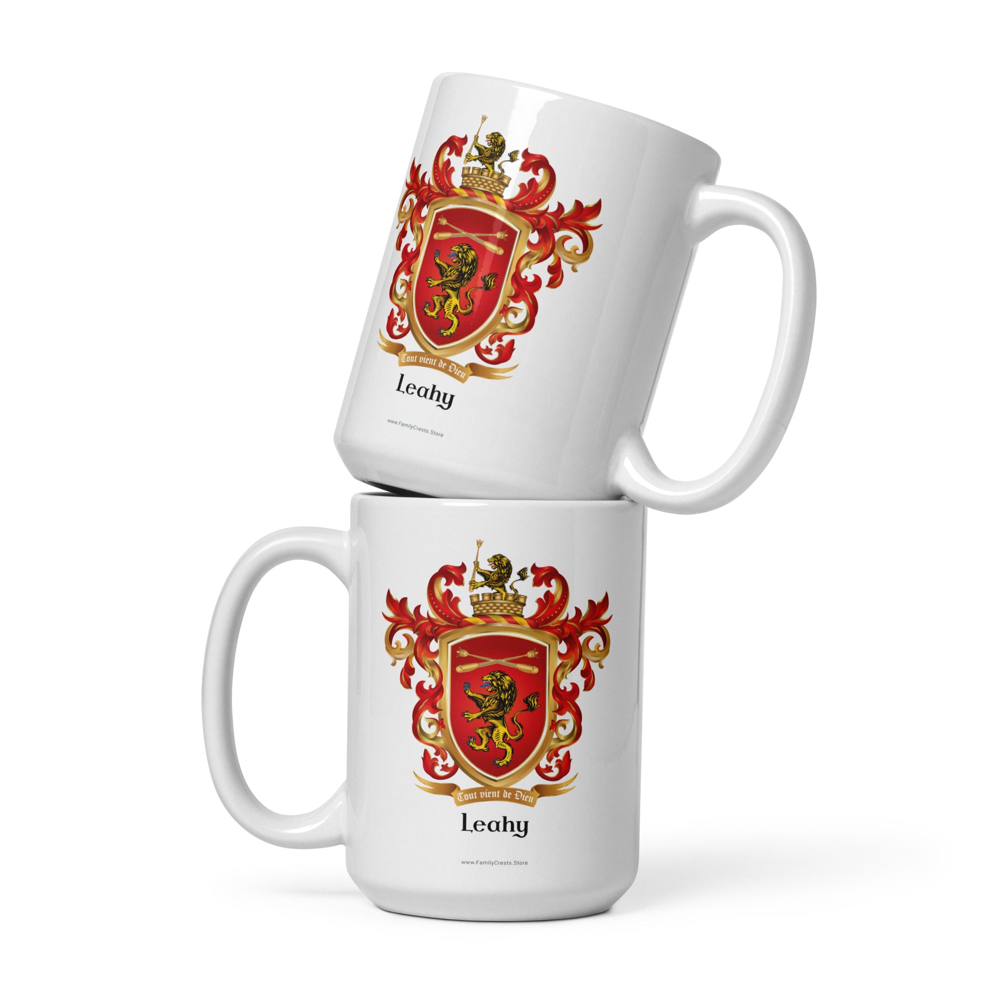A Leahy Family Crest mug is a meaningful choice as a Father's Day gift and it's also guaranteed to get a happy reaction as a Christmas or birthday present. It's nice to have in the home as a conversation starter to get the kids talking about family and heritage. Not just a mug — an artwork and your family story in your hands.